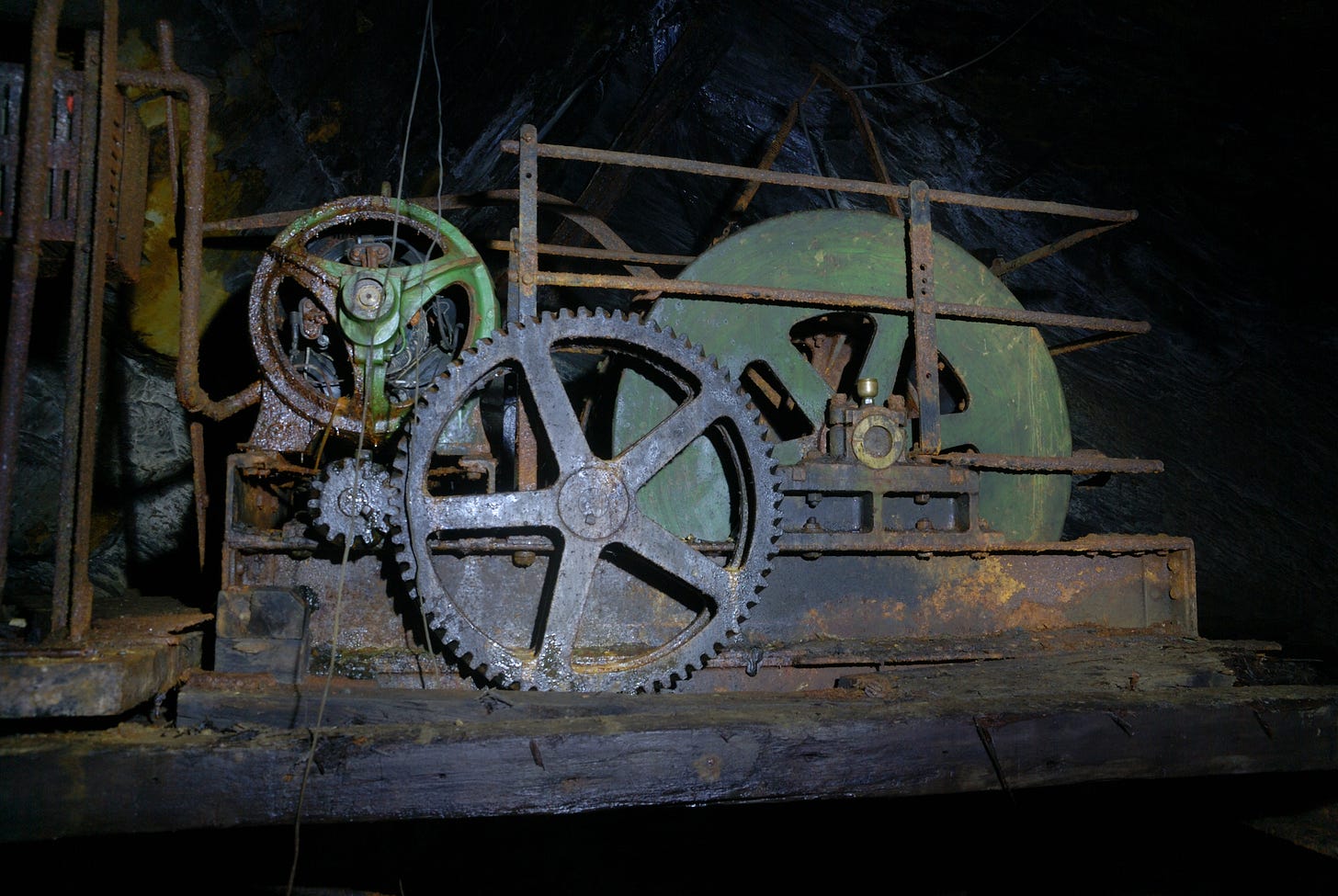 Intact winding gear at the head of an incline. This is not the largest within north Wales slate mines, but it’s probably the best-preserved.